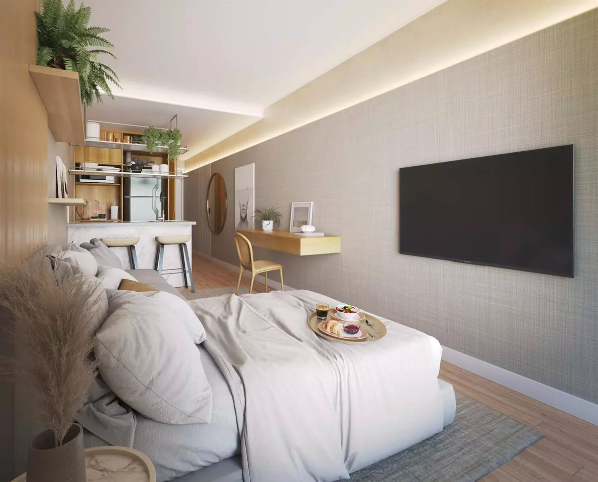 O Be In Rio Leopoldo Miguez oferece apartamentos studios que variam de 33 m² a 69 m², com plantas versáteis e inteligentes que atendem diferentes estilos de vida, seja para quem busca um lar aconchegante ou uma oportunidade de investimento. Cada unidade é cuidadosamente projetada para maximizar a entrada de luz natural e a ventilação, com acabamentos modernos e infraestrutura de alto padrão, refletindo um design contemporâneo, funcional e elegante.