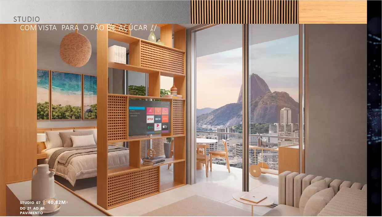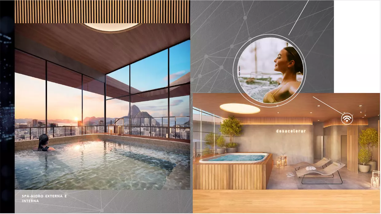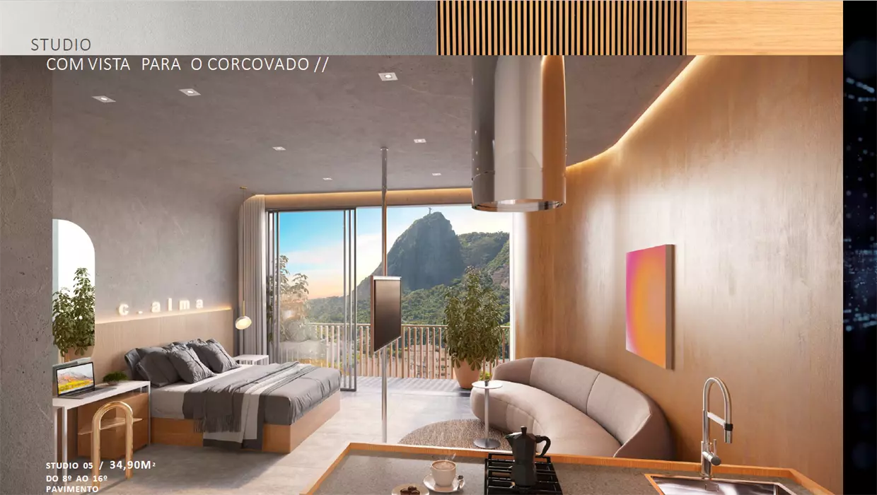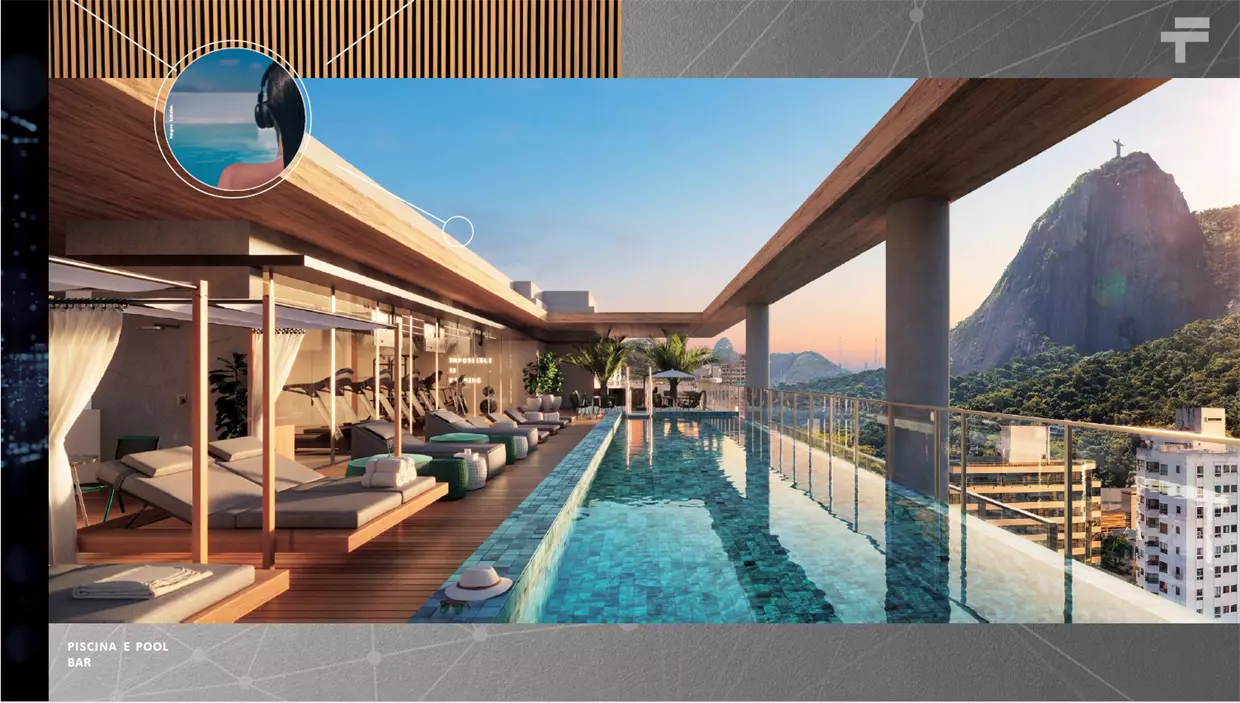 O grande destaque está no rooftop panorâmico, um espaço sofisticado, pensado para momentos de lazer e contemplação. Ali, o morador terá uma vista deslumbrante do Cristo Redentor, emoldurado pela natureza exuberante do Humaitá e pela atmosfera única da Zona Sul. Um verdadeiro refúgio urbano debruçado sobre um dos maiores cartões-postais do mundo.