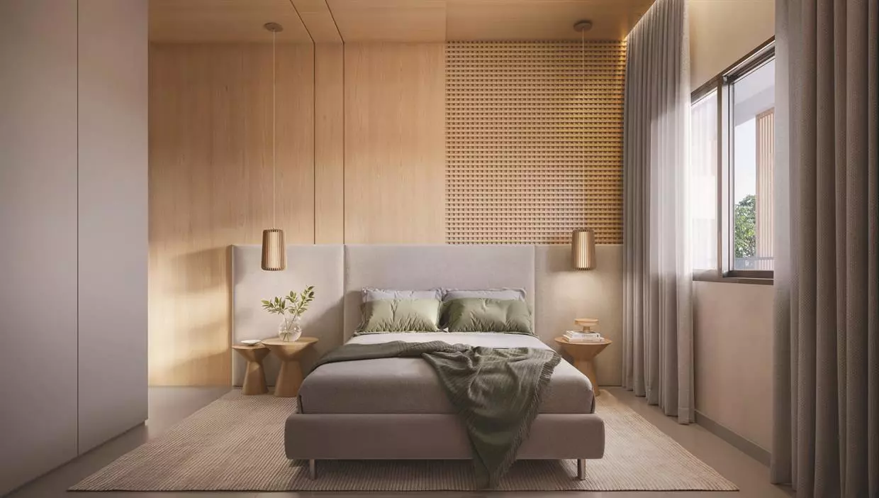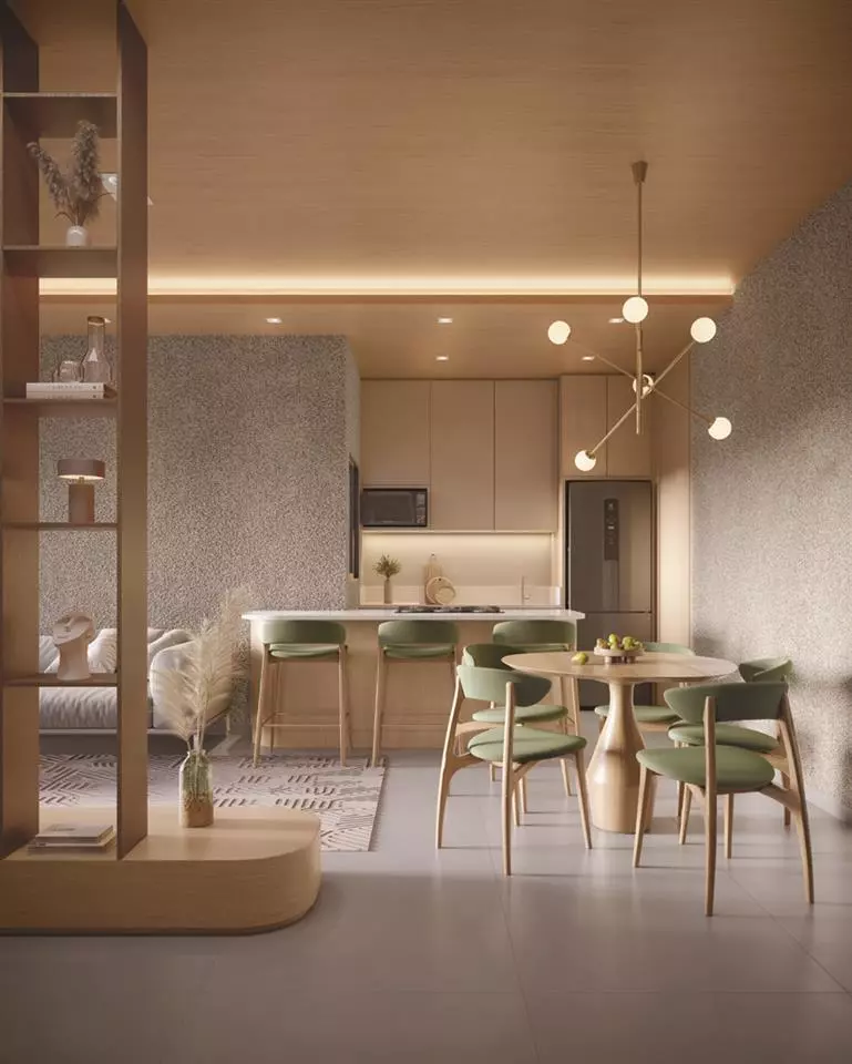 - Unidades de 2 quartos: ideais para famílias que desejam um lar funcional, com ambientes amplos e integrados.